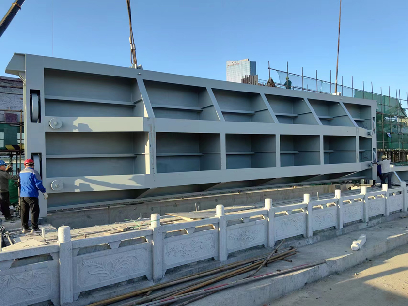 由公司制造的完成的本項目供貨設(shè)備閘門、啟閉機已經(jīng)供貨完成,制···